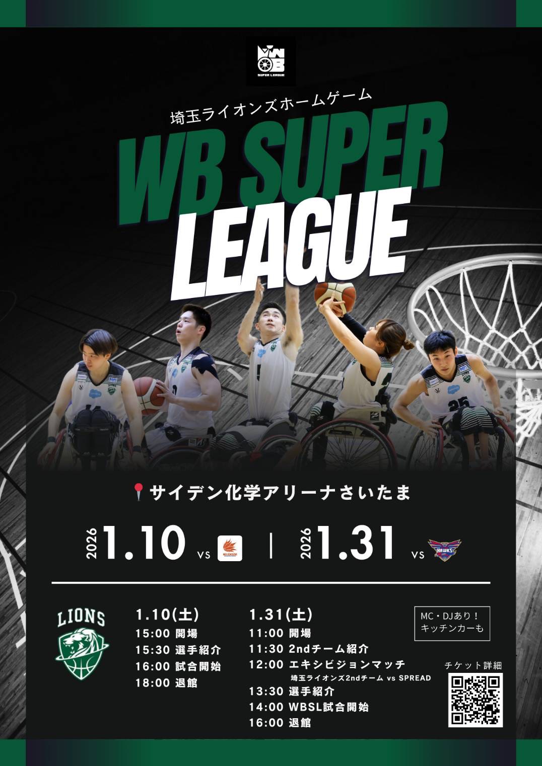 「WB SUPER LEAGUE」 2025埼玉ライオンズホームゲーム開催に伴うチケット販売のお知らせ!!